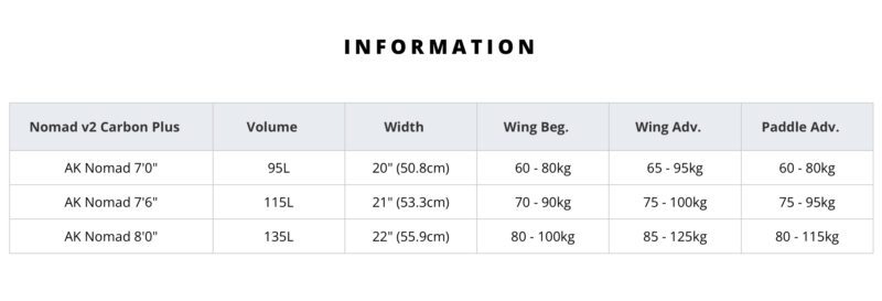 AK Nomad 7'0" 95L, AK Nomad 7'6" 115L, AK Nomad 8'0" 130L