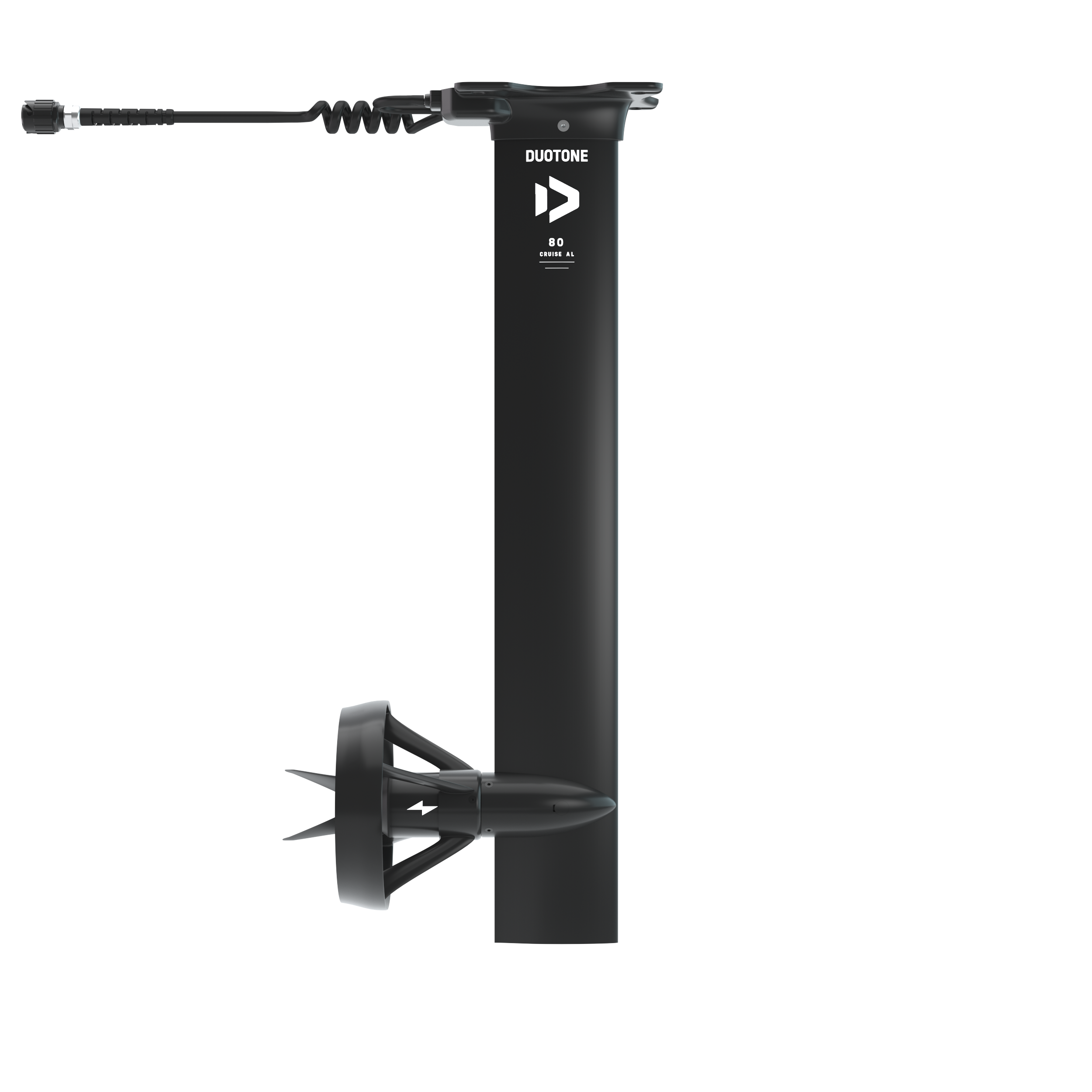 Der Cruise Mast, gefertigt aus Aluminium, ist 80 cm lang und damit etwas kürzer als der eMast AL. Er eignet sich besonders gut für Einsteiger und leicht fortgeschrittene Foiler, die ihre Foilfähigkeiten verbessern oder zum ersten Mal in der Dünung foilen möchten. Der eMast AL Cruise ist äußerst steif und vermittelt ein direktes, reaktionsschnelles Fahrgefühl. Der leistungsstarke Motor ist unten am Mast montiert, 15 cm oberhalb der Fuselage, und mit einem Zweiblatt-Faltpropeller ausgestattet. Aufgrund des freiliegenden Propellers, empfehlen wir besonders Anfängern den optionalen Propellerschutz zu montieren. Dieser verfügt über ein hydrodynamisches Design, um den Widerstand und dadurch erhöhten Energieverbrauch möglichst gering zu halten. Selbst mit Schutzvorrichtung ist allerdings immer noch Vorsicht vor dem Propeller geboten. Alle Komponenten des Foil Assist Systems sind mit den anderen Mastoptionen kompatibel, sodass du dein Setup einfach erweitern kannst. Mit einer breiten Auswahl an Fuselage-Adaptern – darunter neben Duotone zehn weitere Optionen wie F-One, Armstrong, Gong, Axis, Lift, North, Code, Sab, AFS und KT – lässt sich der Foil Assist problemlos mit den meisten Foilsystemen kombinieren. Am Board wird er wie ein klassischer Mast montiert. Folgende Artikel sind im eMast AL Cruise Set enthalten: * Foil Assist Cruise Mast AL inkl. Motor, Rotoreinheit, Plastik-Propellerblätter, Standardkabel und Leash * Propellerschutz * Cruise eMast Cover * Rotoreinheit & Propellerschutz * Schraubenset und Werkzeuge * Kabelhalter V * Ersatz-Plastikpropellerblätter * Batterietasche