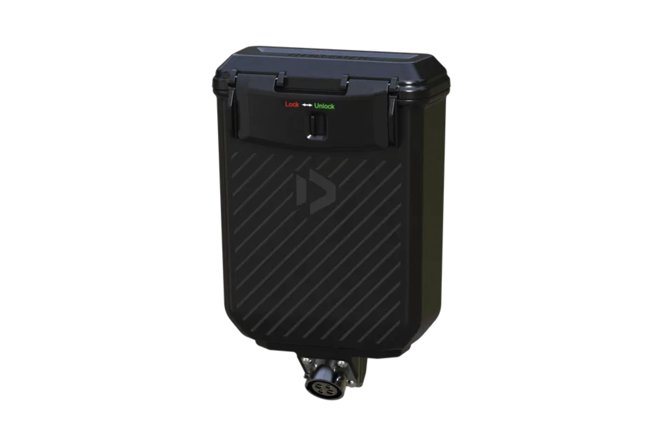 Sie besteht aus strapazierfähigem Kunststoff und enthält einen Empfänger, der im Deckel der Box integriert ist. Das Schiebeschloss in Kombination mit dem Dichtungsring verhindert, dass sich die Box versehentlich im Wasser öffnet und Wasser von außen eindringen kann. Ein Gore-Tex-Ventil auf der Rückseite sorgt dafür, dass kein übermäßiger Druck in der Box entsteht und ist zudem wasserdicht. Die Batteriebox wird mit vier Schrauben am eTrapez befestigt. In unserem Help Center (https://www.duotonesports.com/en/foiling-electric/more/service/helpcenter?userLanguageSwitch=true&hcUrl=%2Fde-DE%2Farticles%2Ffoil-assist-316774) erklären wir dir, wie du die Box bei Bedarf austauschen kannst und worauf du dabei achten solltest.