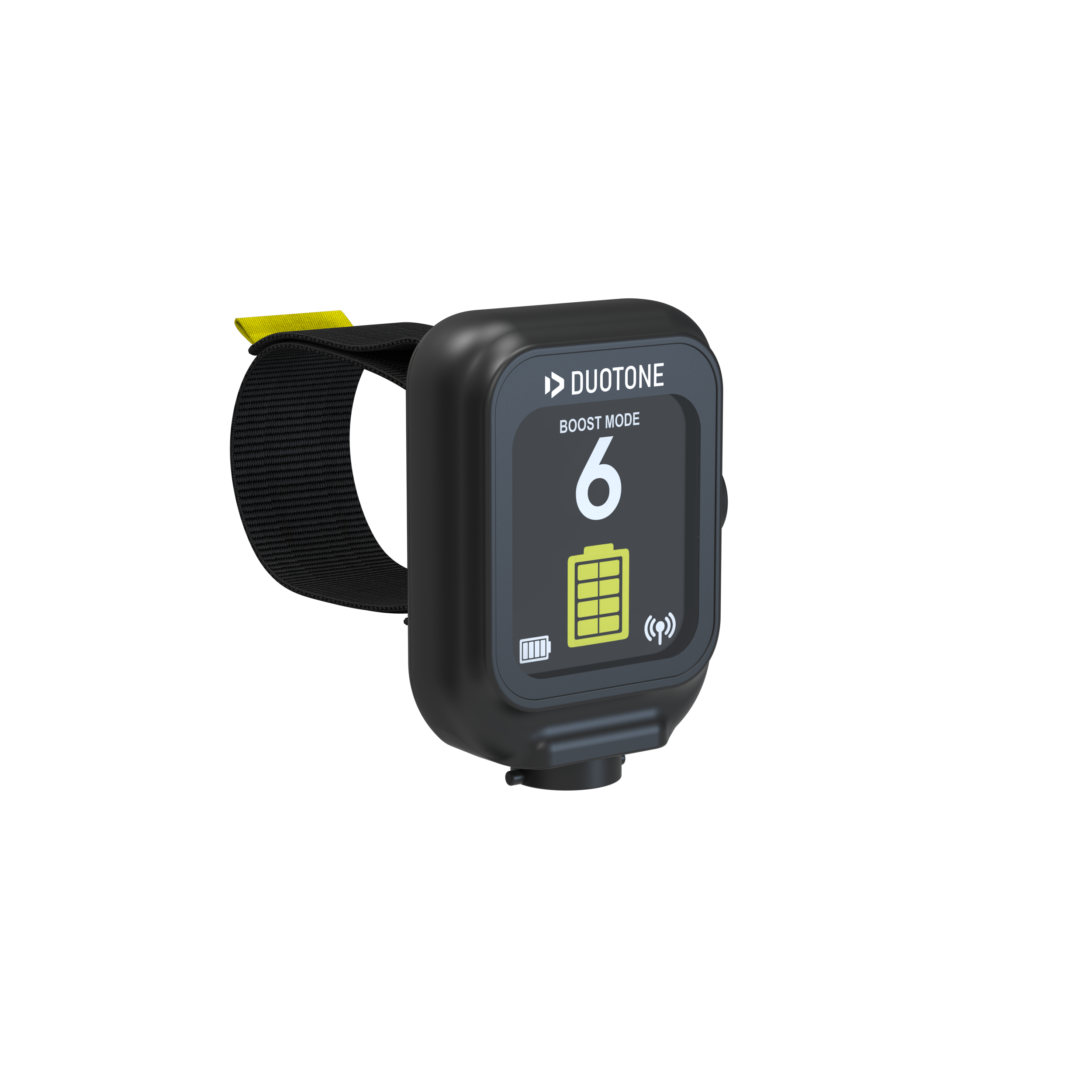 Mit dieser Uhr kannst du folgende Parameter überwachen: * Geschwindigkeitslevel: 0 – 7 * Batteriestatus des Foil Assists * Batteriestatus der Fernbedienung * Verbindungsstatus: Überprüfe auf einen Blick, ob deine Fernbedienung mit den Batterien verbunden ist. * Einstellung: Sieh, ob deine Fernbedienung im Standard-Modus (5 Geschwindigkeitslevel, energiesparend) oder im Boost-Modus (7 Geschwindigkeitslevel, energieintensiv) eingestellt ist. * Sperre: Das Schloss-Symbol zeigt an, ob die Fernbedienung gesperrt oder entsperrt ist. Die Uhr verfügt auf der rechten Seite über einen praktischen Ein-/Ausschalter und auf der Unterseite über einen Drehanschluss, der eine einfache Verbindung zum Lade- oder Ringkabel ermöglicht.