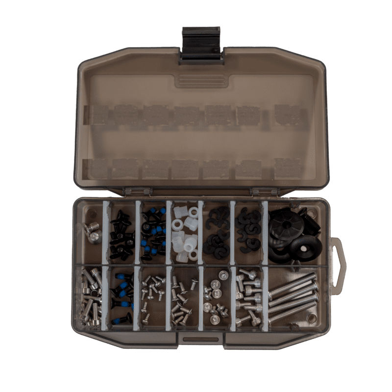 Die Foil Assist Ersatzschrauben umfassen eine Vielzahl von Schrauben und Unterlegscheiben, die benötigt werden, um verschiedene Teile des Mastes auszutauschen oder zu befestigen. * Motorgehäuse: M5x35 (4 Stück) * Top Plate Anschluss: M4x12 & Unterlegscheiben (10 Stück) * Top Plate Kabelabdeckung: M3x8 (10 Stück) * Top Plate am Mast befestigen: M6x10 (2 Stück) * ESC-Kabelinstallation: Schwarze C-Unterlegscheibe – Dick (10 Stück), Schwarze C-Unterlegscheibe – Dünn (10 Stück), Wasserdichter Silikonring (10 Stück) * ESC: M4x8 (10 Stück) * Motor: M4x10 (mit blauer Schraubensicherung) (10 Stück) * Propellerhalterung an der Antriebseinheit befestigen: M4x8 Senkkopfschraube (10 Stück) * Empfängerhalterung: M3x6 (10 Stück) * Batteriebox-Schloss: M3x4 Innensechskant & Unterlegscheiben (10 Stück) * Batteriebox am eTrapez befestigen: M6x18 & Unterlegscheibe (4 Stück)
