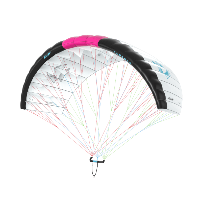 Der Stash überzeugt mit zahlreichen Verbesserungen in Flugstabilität, Power, Am-Wind-Performance, Depower und Flugkomfort – bei einfachem Handling, kompakter Verstaubarkeit und intuitiver Steuerung. Unser Design-Team hat die Anströmkante des Wings stärker segmentiert und damit ein neues Stabilitätsniveau erreicht. Profilstärke und Anstellwinkel wurden präzise abgestimmt, um eine ideale Balance aus geringem Widerstand, effizienter Depower und stabilem Flugverhalten zu schaffen. Das Ergebnis: Ein größerer Einsatzbereich und exzellente Kontrolleigenschaften – selbst bei böigem Wind und unterschiedlichen Fahrwinkeln. Wie gewohnt ist der Stash aus superleichtem 30g Ripstop-Canopy gefertigt, das schon bei sehr wenig Wind zuverlässig fliegt, intuitiv reagiert und sich kompakt zusammenfalten lässt. Die neuen beschichteten Leinen bieten eine deutlich verringerte Tendez sich zu verheddern bei gleichzeitig höherer Flugstabilität. Mit ihrer geringen Länge erleichtern sie das Einholen und Verstauen über alle Größen hinweg – von 2.2 m² bis 5.6 m². Dank des überarbeiteten Aspektverhältnisses und Arc-Designs überzeugt der 2026er Stash mit Am-Wind und Depower Eigenschaften auf völlig neuem Niveau. Dies wird vor allem durch zwei zentrale Design-Innovationen ermöglicht: Leading-Edge Bridle-Geometrie: Das vordere Leinen-Dreieck hält die Anströmkante des Parawings stets in einem positiven Anstellwinkel, wodurch der stabile, offene Shape auch bei maximaler Depower beibehalten wird. Neu entwickelte ergonomische Carbon-Handle: Die neue Handle ermöglicht es, die vordere Hand unter die A-Leinen zu schieben, was den Fahrkomfort und die Kraftverteilung immens verbessert. Die Leinen-Anbindungen sind in die Handle integriert, inklusive Trapeztampen – für ein sauberes, aufgeräumtes Setup, verwicklungsfreies Verstauen und einen schnellen Re-launch. Ein weiteres Highlight ist das 3-farbige Codierungssystem an Wing und Leinen: Haupt-Canopy, Anströmkante und LE-Mitte sowie die drei Leinenreihen (A, B, C) haben jeweils unterschiedliche Farben – für einfaches Sortieren, Entwirren und vor allem einen unkomplizierten Start. Mit dem 2026er STASH hebt DUOTONE die Welt des puren Foilings auf ein völlig neues Level – noch zugänglicher, intuitiver und effizienter als je zuvor.