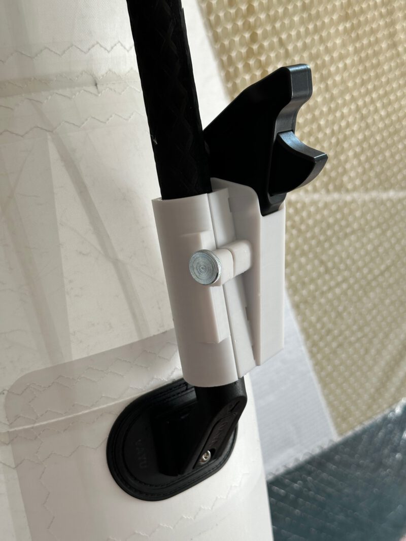 Die Halterung passt für Vayu Wing Handles und Vayu Boom. Die Halterung wird ganz bequem mit einer Schraube am Boom befestigt. Die Position lässt sich durch Öffnen der Schraube leicht verstellen um eine perfekte Position für die Fernbedienung zu finden. Die Fernbedienung ist zur Sicherheit zusätzlich am Boom zu befestigen.