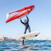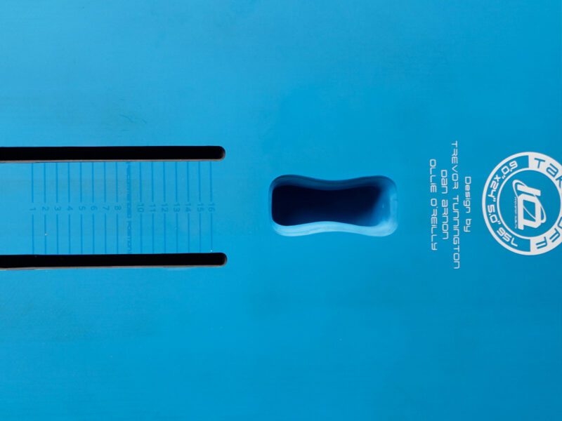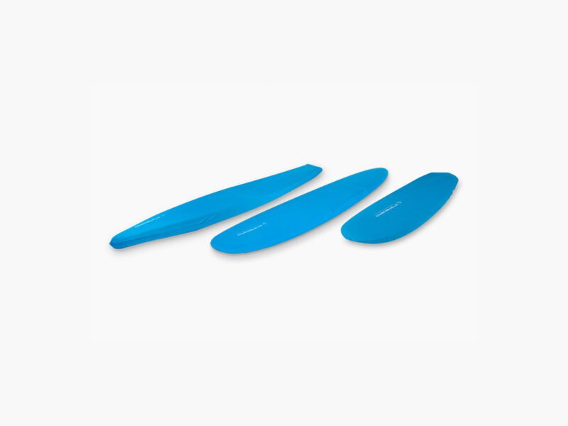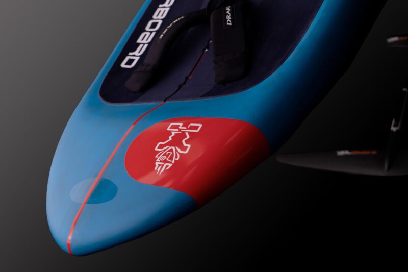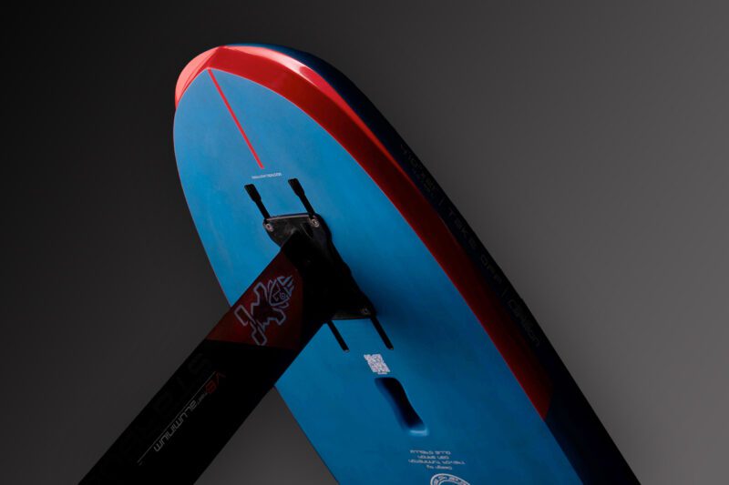 Leichte biaxiale Carbonfasern auf dem Deck und am Boden sorgen für Steifigkeit und Festigkeit. Ein pfeilförmiger PVC-Stringer sorgt für zusätzliche Bruchfestigkeit und Steifigkeit über dem Foil, was für lange, schmale Formen unerlässlich ist.