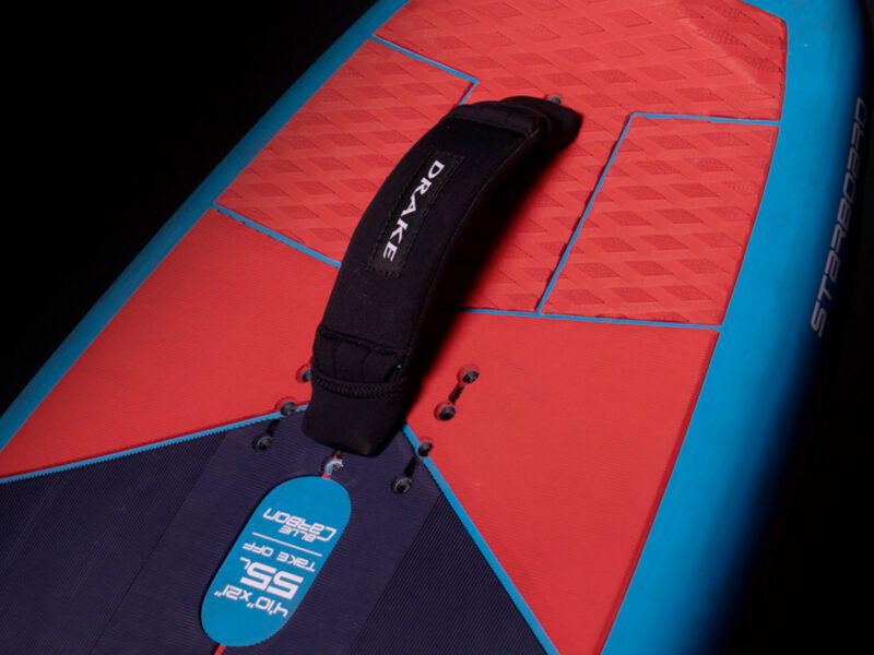 Durch die Verwendung von hochwertigem 150 g Biaxial-Carbon ist das Board deutlich leichter und dennoch unglaublich stark und steif. In einem speziellen Verfahren wird ein Doppelstringer hergestellt, der die Bruchfestigkeit und Steifigkeit erhöht.
