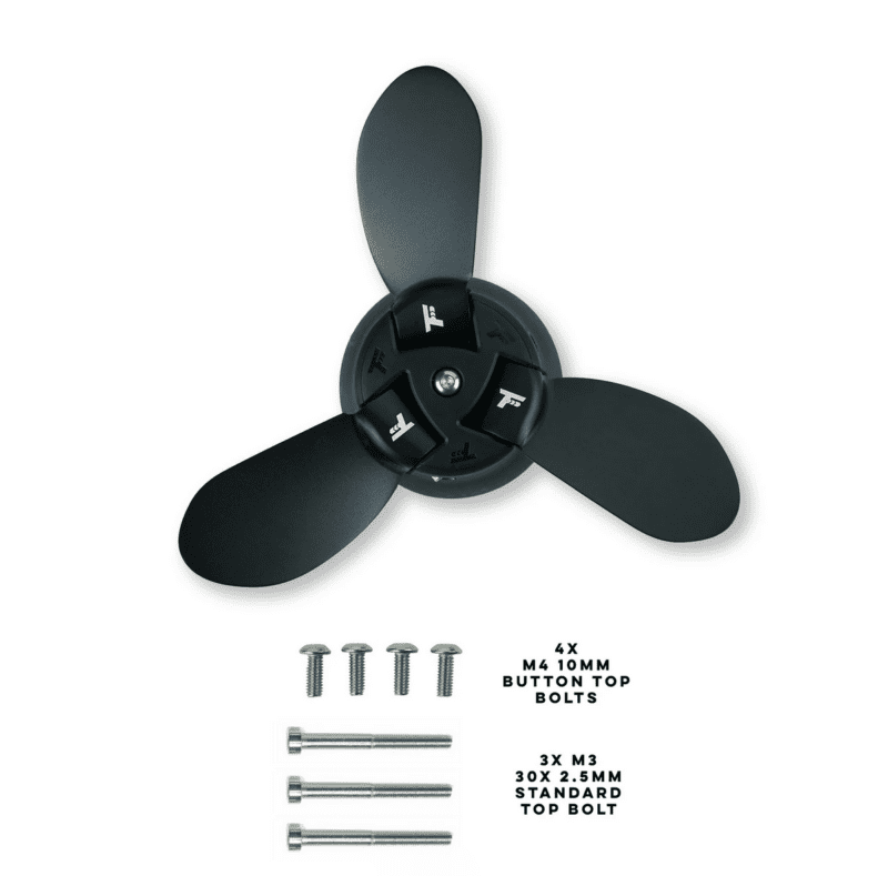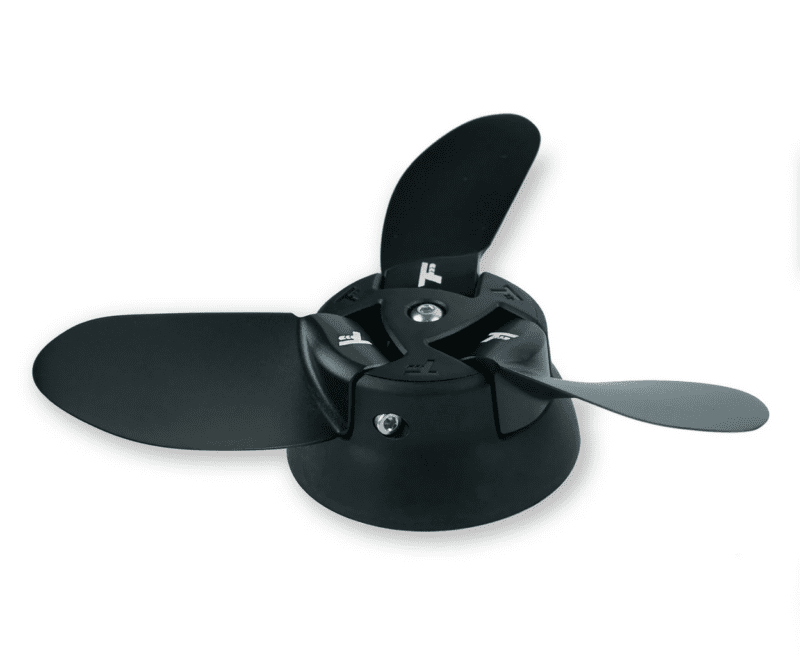 Die Drei-Blatt-Propeller-Nabe wurde entwickelt, um den Schub im unteren Bereich zu erhöhen. Sie ist ein optionales Upgrade für Foil Drive Assist PLUS-Geräte und ist ein entscheidender Vorteil für Fahrer, die an die Grenzen des Fahrergewichts, der Boardgröße und der Foilgröße gehen.